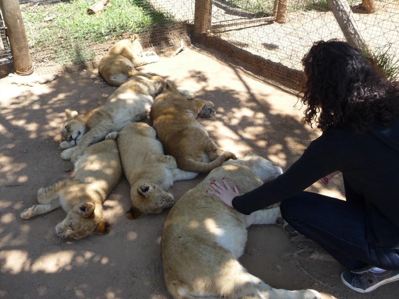 Une vraie activité de touriste : au Lion Park, il est possible d'entrer dans la cage des lionceaux pour les caresser