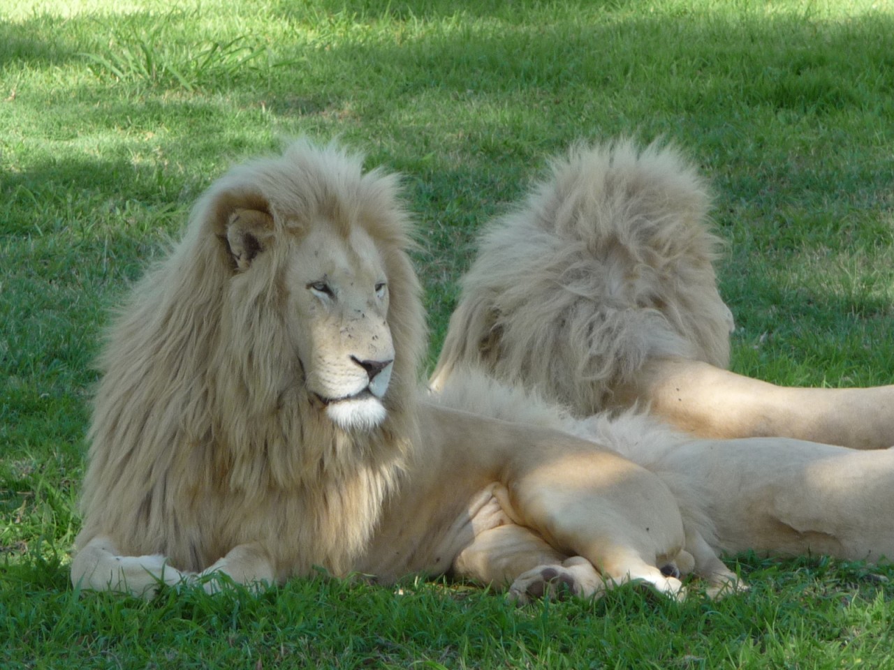 La grande fierté du parc : ce sont ces lions blanc, une espèce très rare, ici en semi-liberté.