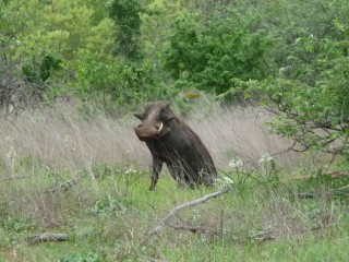 Nous avons pu observer de près ce couple de lions bien caché derrière la brousse du parc national Kruger.