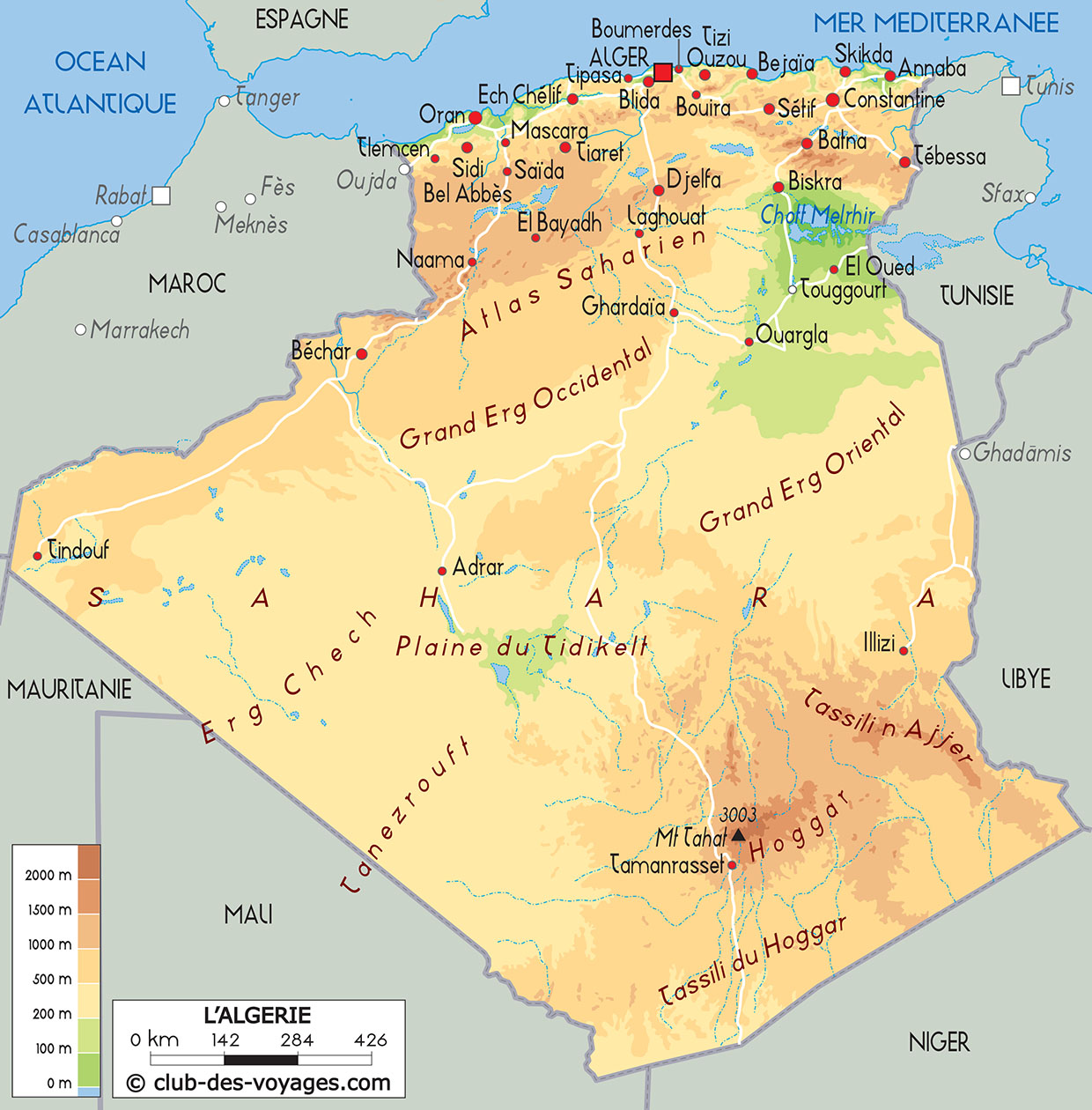 Nos différentes cartes de l'Algérie à explorer: carte physique, carte routière, vue satellite. Pour tout savoir sur la géographie de l'Algérie.