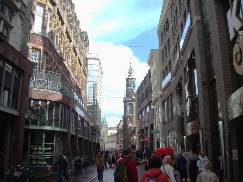 Visite de la ville : La tour de la monnaie vue depuis Kalverstraat |