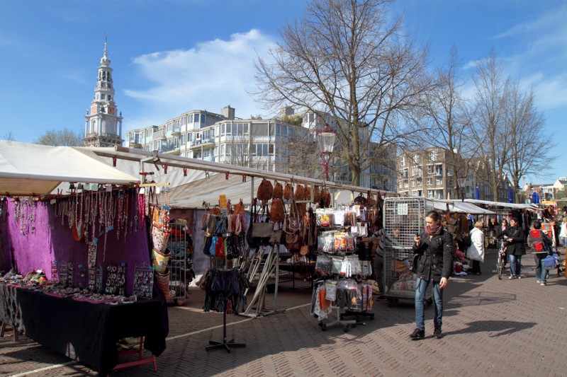 Après la place, commence la Rapenburgestraat où se tient le marché aux puces d'Amsterdam. Parmi les innombrables objets de pacotilles, on décèle parfois des céramiques de Delphes ou de vieux meubles.