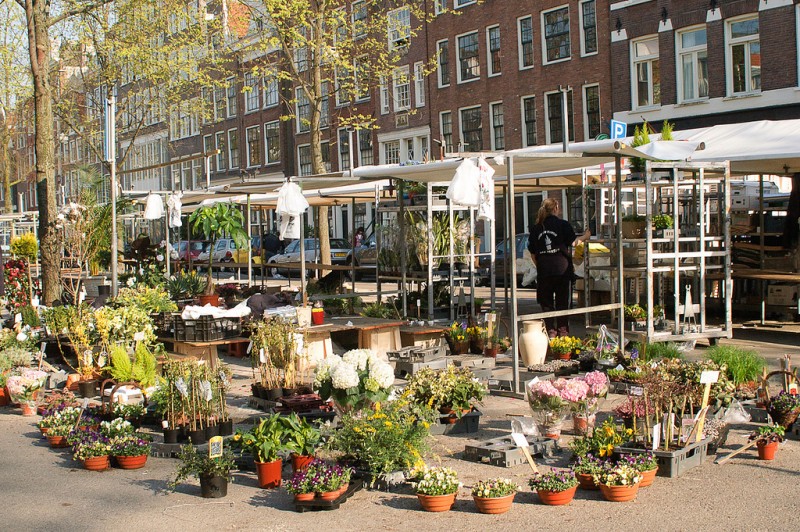 Le marché aux fleurs d'Amsterdam se tient le long du canal Singel. La culture des fleurs en serre, surtout des fleurs à bulbe, comme les tulipes et les jacinthes, est un coup de génie des néerlandais.