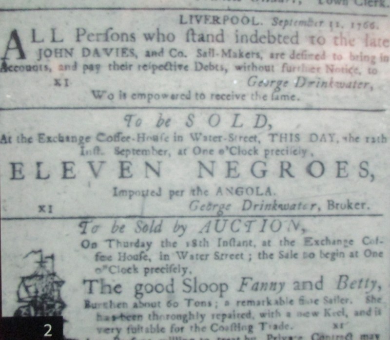 Histoire de Liverpool : Annonce de vente d'escalve à Liverpool, 1766 |