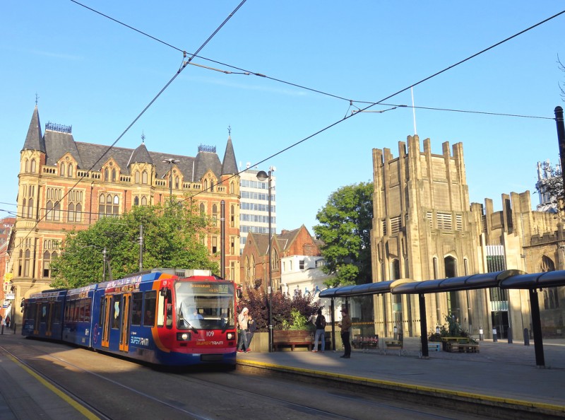 Sheffield : Le tramway et la place de la cathédrale |