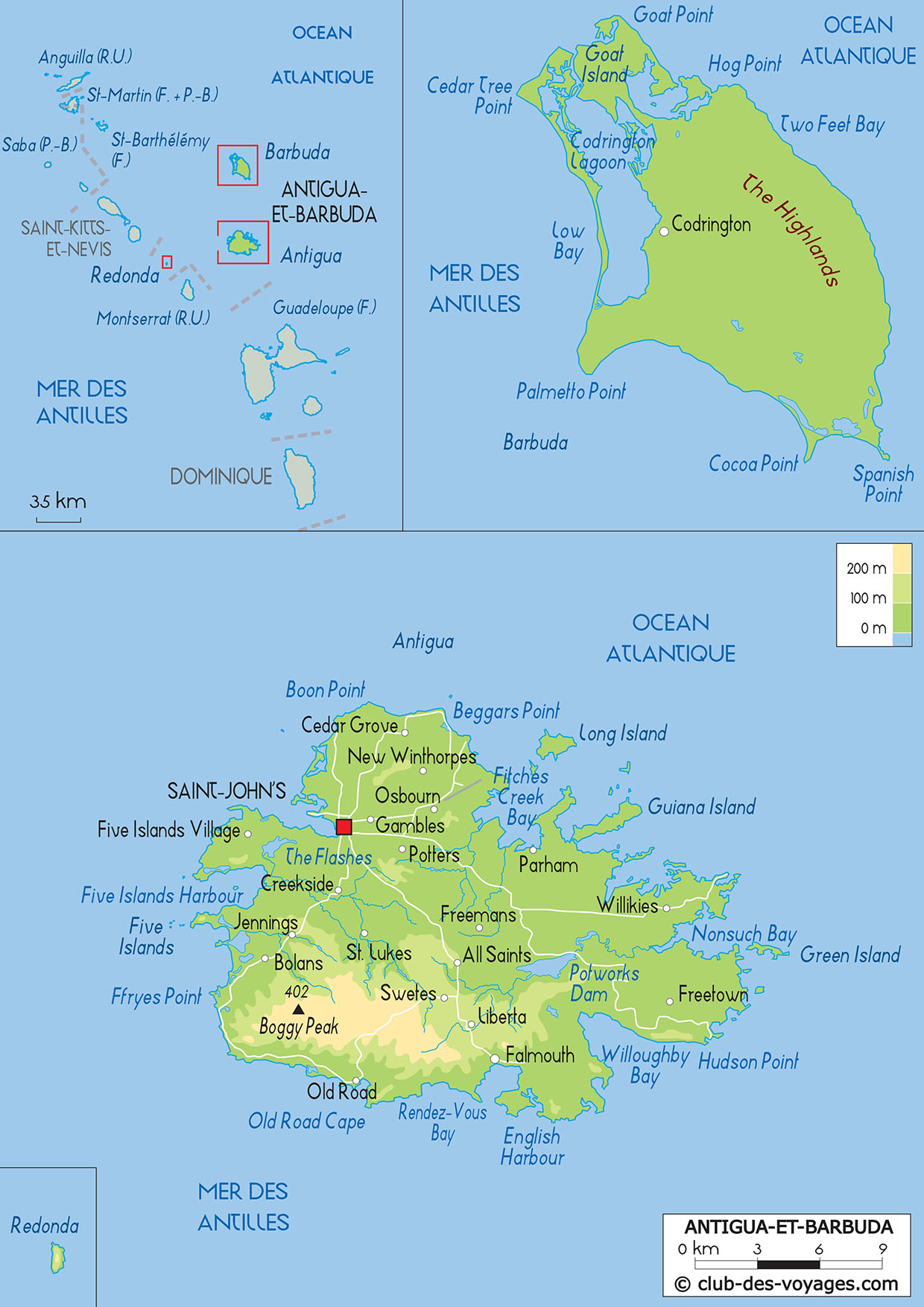 Nos différentes cartes d'Antigua-et-Barbuda à explorer: carte physique, carte routière, vue satellite. Pour tout savoir sur la géographie d'Antigua-et-Barbuda.
