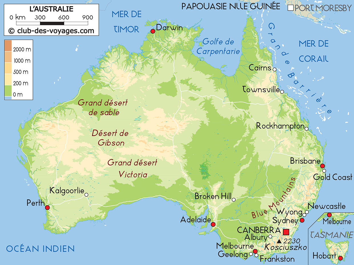 Nos différentes cartes de l'Australie à explorer: carte physique, carte routière, vue satellite. Pour tout savoir sur la géographie de l'Australie.