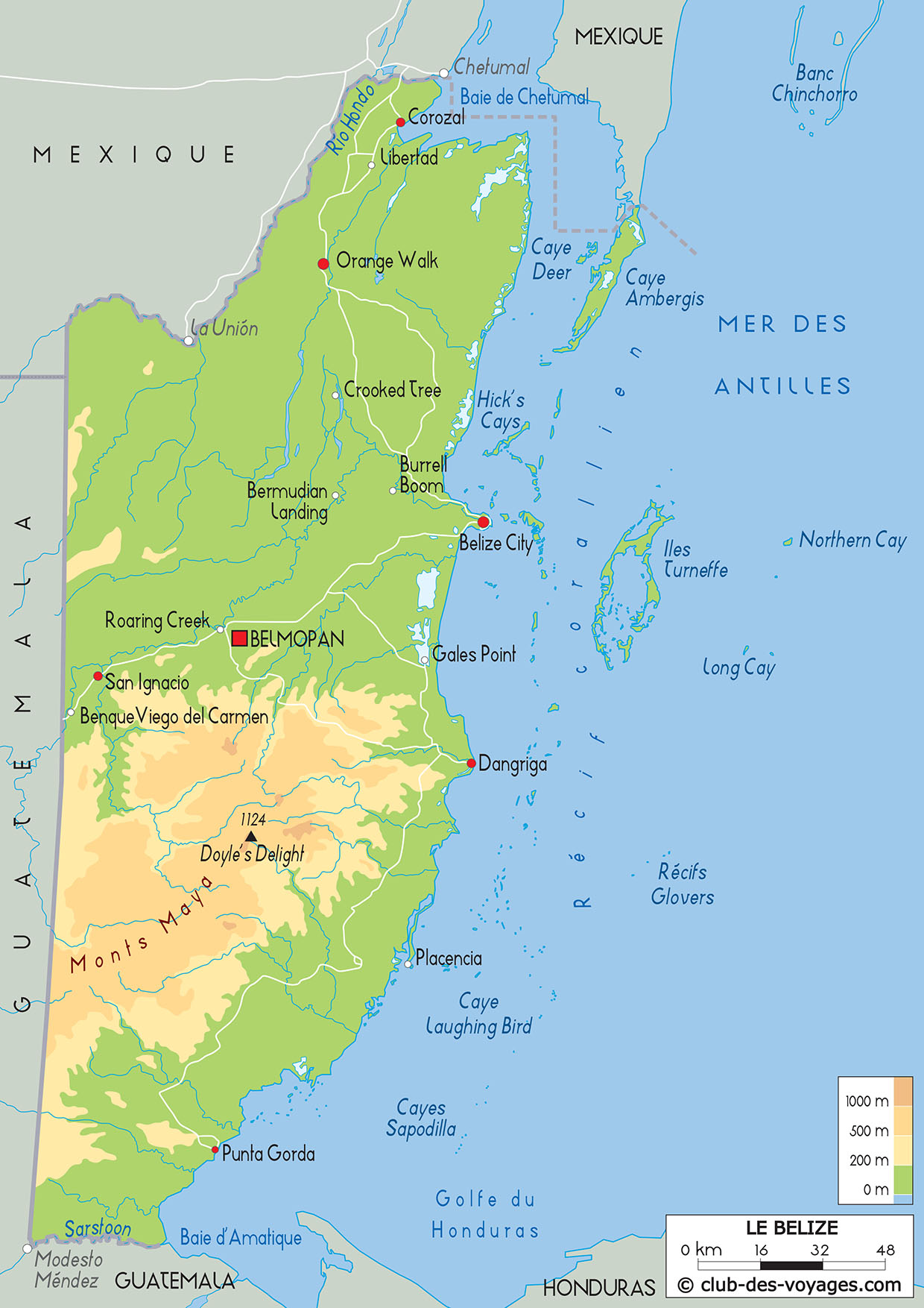 Nos différentes cartes du Belize à explorer: carte physique, carte routière, vue satellite. Pour tout savoir sur la géographie du Belize.