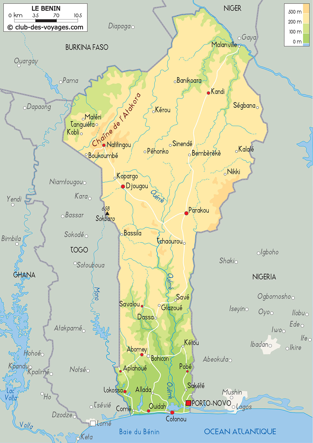 Nos différentes cartes du Bénin à explorer: carte physique, carte routière, vue satellite. Pour tout savoir sur la géographie du Bénin.