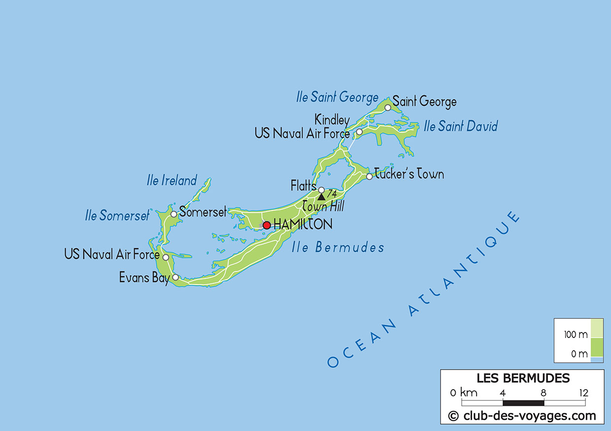 Nos différentes cartes des Bermudes à explorer: carte physique, carte routière, vue satellite. Pour tout savoir sur la géographie des Bermudes.