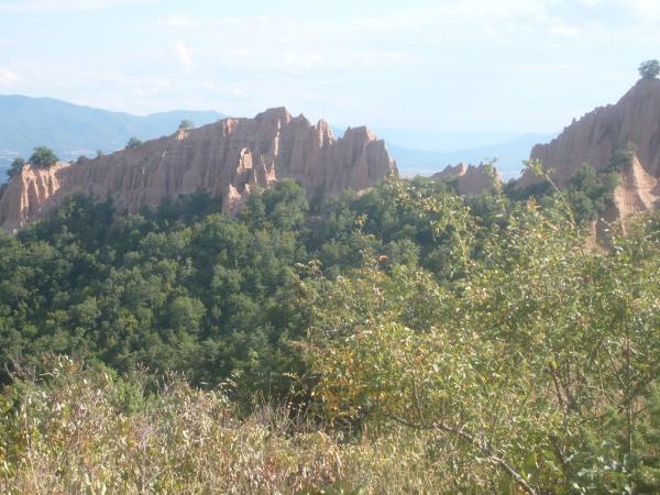 Momtagnes en terre sableuse dessinant par l erosion, des cheminees de fees