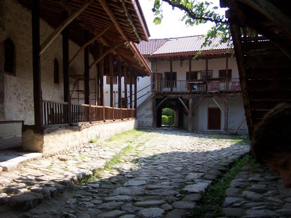 Le petit monastère de Rozen. Perdu à quelques kilomètres de Melnik, même s'il n'est pas comparable à Rila, le monatère de Rozen mérite le détour. Superbe treille de vigne au milieu de son jardin. Un seul jeune Prêtre semble occuper les lieux.