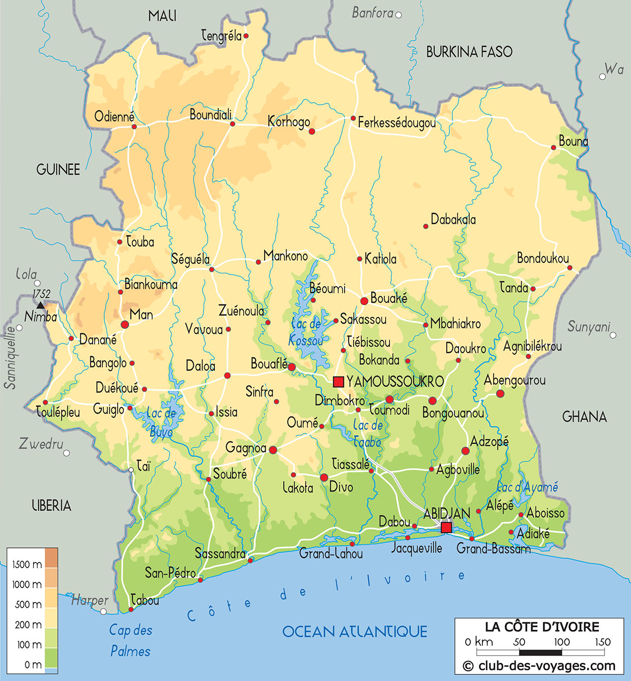 Nos différentes cartes de la Côte d’Ivoire à explorer: carte physique, carte routière, vue satellite. Pour tout savoir sur la géographie de la Côte d’Ivoire.