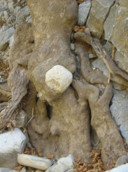 Un arbre, des Gorges de Prassiès, qui digère son caillou !