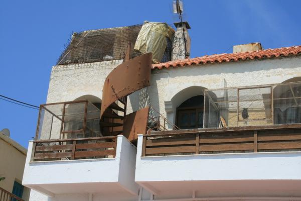 Une cage pour chats aménagée sur un balcon à Paléochora.