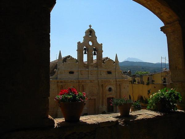 Le Monastère d'Arkadi (vue de la galerie au dessus du portail d'entrée)