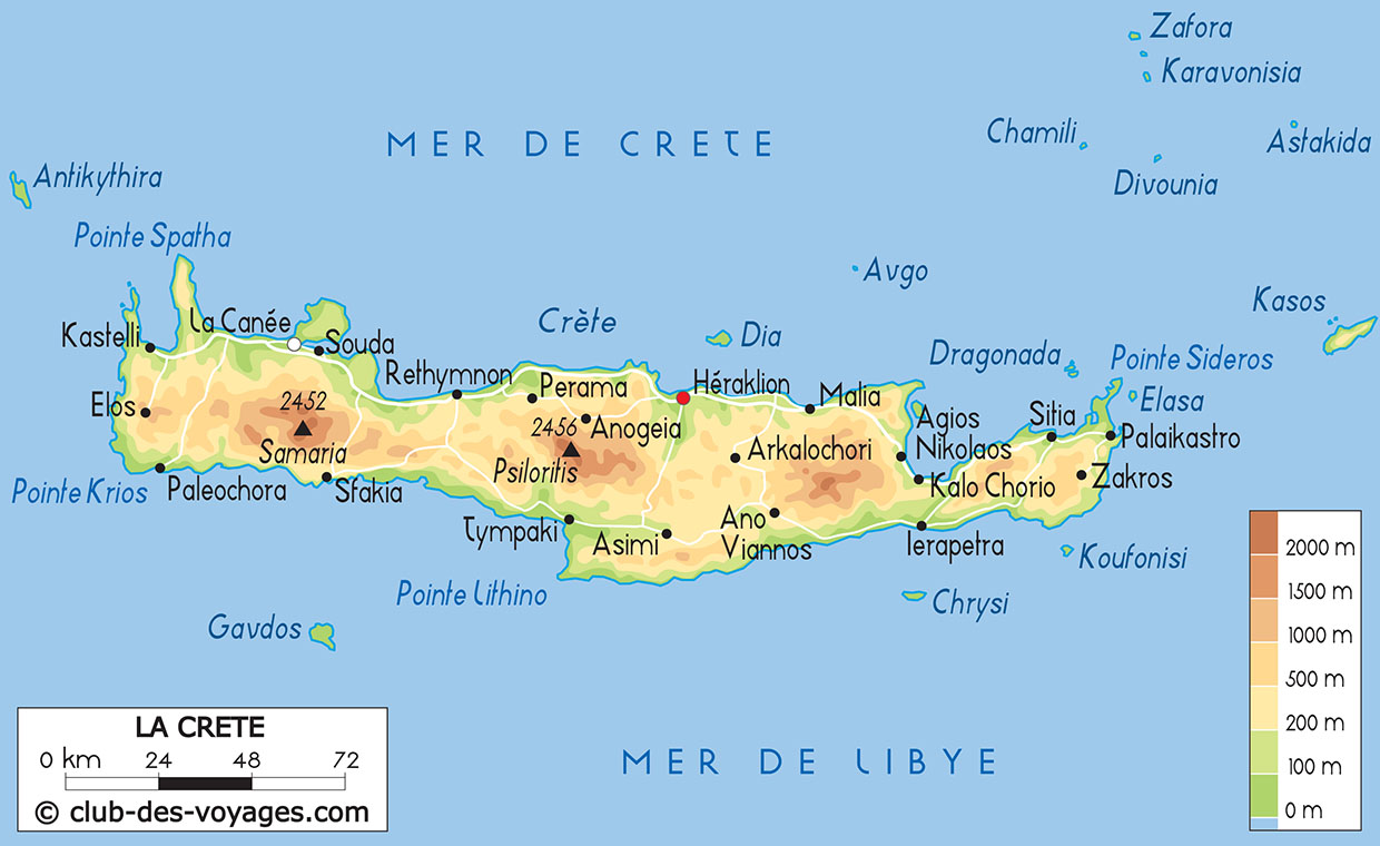 Nos différentes cartes de la Crète à explorer: carte physique, carte routière, vue satellite. Pour tout savoir sur la géographie de la Crète.