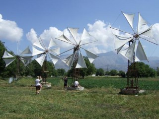 A 22 km à l'Est d'Héraklion, une route desservant de beaux villages mène au plateau du Lassithi. Situé à 900 mètres d'altitude et entouré de montagnes, il est hérissé de quelques 7000 éoliennes qui servent à irriguer les cultures potagères et les champs plantés de poiriers et de pommiers. Hélas, de nos jours, les éoliennes sont peu à peu remplacées par des pompes motorisées.