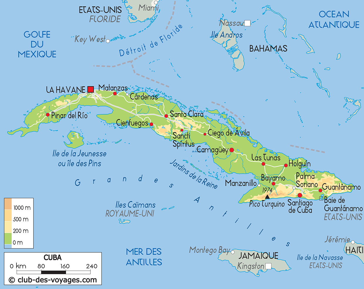 Nos différentes cartes de Cuba à explorer: carte physique, carte routière, vue satellite. Pour tout savoir sur la géographie de Cuba.