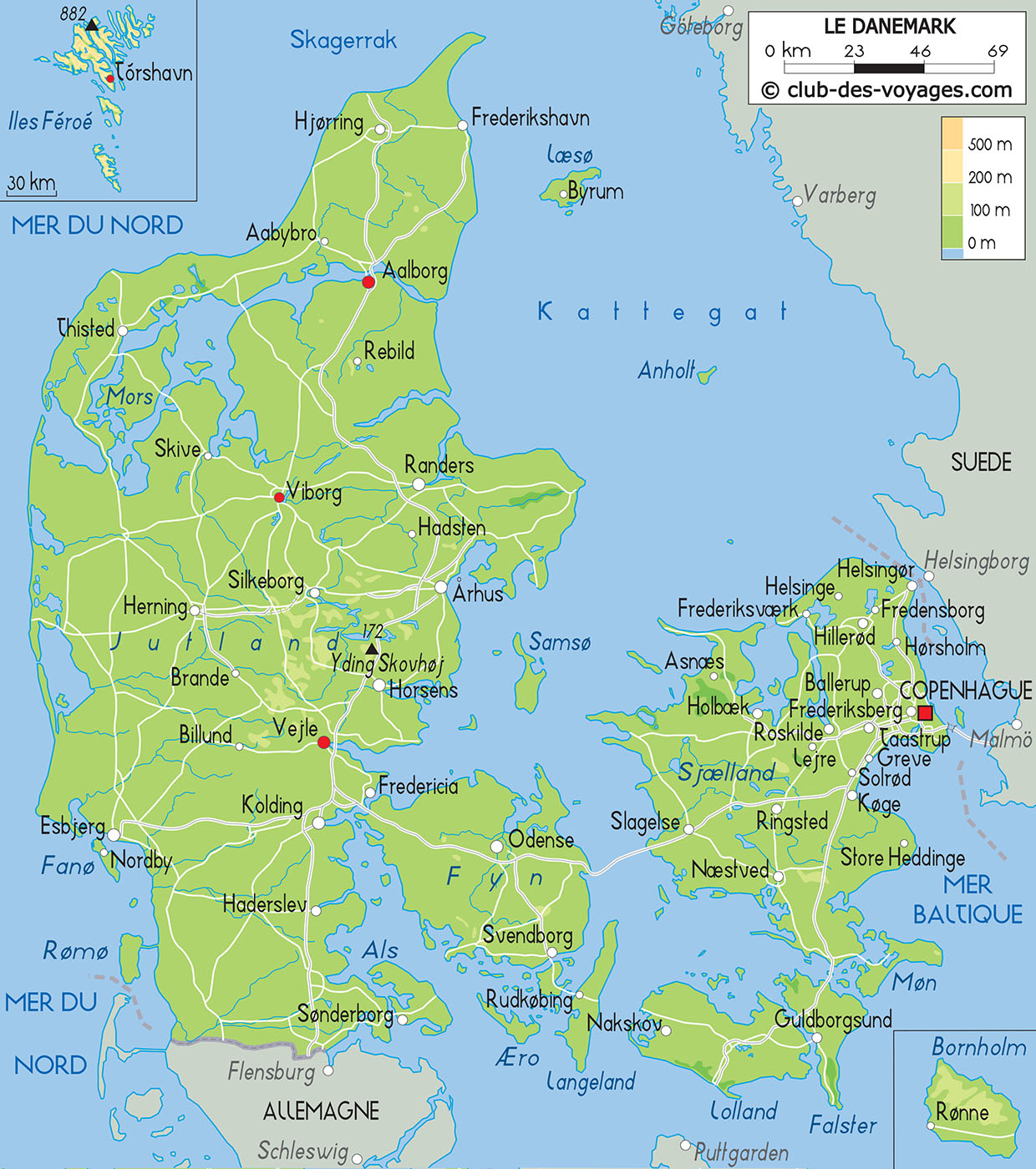 Nos différentes cartes du Danemark à explorer: carte physique, carte routière, vue satellite. Pour tout savoir sur la géographie du Danemark.