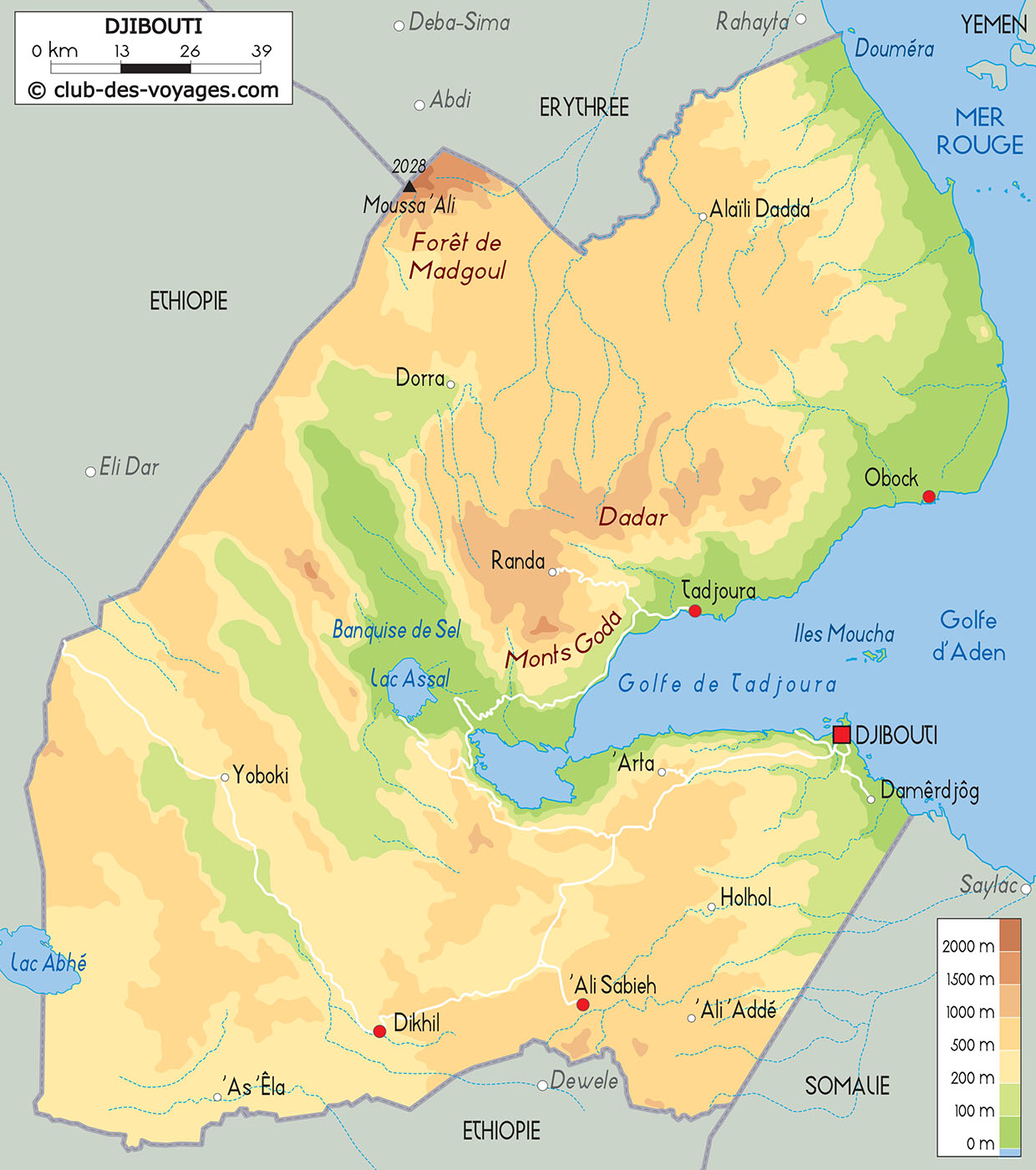 Nos différentes cartes de Djibouti à explorer: carte physique, carte routière, vue satellite. Pour tout savoir sur la géographie de Djibouti.