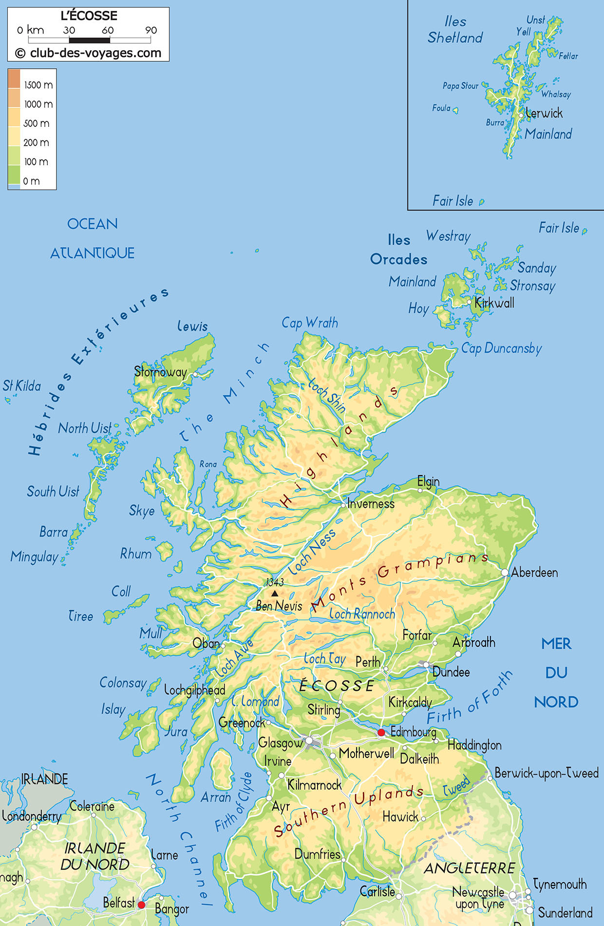 Nos différentes cartes de l'Écosse à explorer: carte physique, carte routière, vue satellite. Pour tout savoir sur la géographie de l'Écosse.