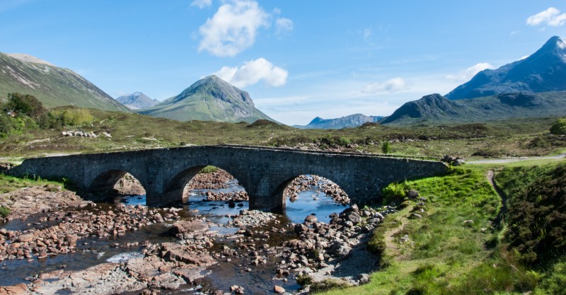 Séparée de la côte des Highlands du Nord-Ouest par un étroit bras de mer, l'île de Skye ne doit pas sa fréquentation intense au simple fait que son accès est facile. En dépit de leur modeste altitude (1 009 mètres), les monts Cuillin, qui occupent son centre, sont parmi les plus élevés de Grande-Bretagne et offrent au visiteur de spectaculaires paysages.