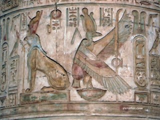Reliefs polychrome sur un pilier du temple de Kôm...
