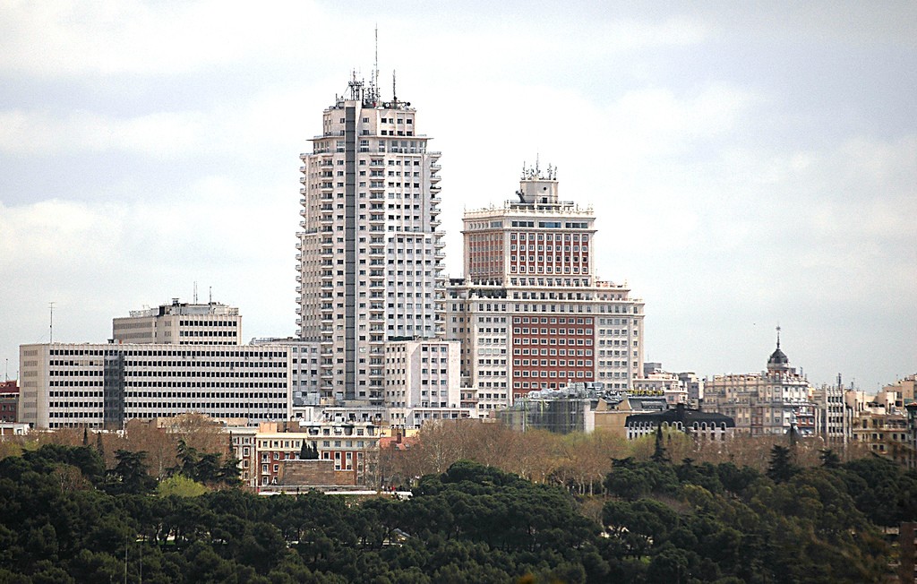 La photo du jour est prise au coeur de Madrid, et présente deux buildings emblématiques de la ville : la Torre de España et l'Edificio España (au pied de ces immeubles se trouve la fameuse statue de Don Quichotte et Sancho Panza).