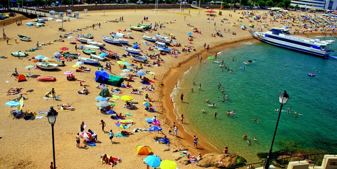 Vue plongeante sur la plage de Tossa de Mar, sur la côte méditerranéenne.