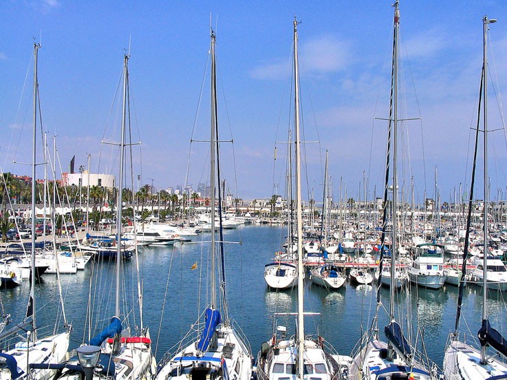 La photo du jour représente une forêt de mats de petits bateaux de plaisance dans le port Olympique de Barcelone, sous un ciel lumineux...