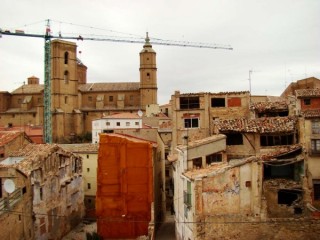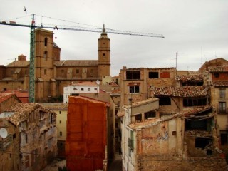 La ville d'Alcañiz est située dans la Province de Teruel (Aragon). Elle est située à 103 kilomètres de Saragosse. Le nom de la ville "Alcañiz" a une origine arabe (Alcaniz = l'église). La ville, de fondation probablement ibère, fut sans doute habitée par des mozarabes sous l'occupation maure. Elle fut reprise par Alphonse premier le batailleur en 1117. Il y fit construire un château en 1124. La ville fut abandonnée puis reconquise définitivement une seconde fois en 1157. Alcaniz est aujourd'hui une petite et paisible cité aragonaise. On peut visiter la Plaza de España qui possède un beau bâtiment à arcades gothique de la fin du XVème siècle, qui servait autrefois de bourse du commerce. Accolé à cet édifice se trouve l'ayuntamiento qui a une belle façade renaissance. L'église collégiale de Santa Mario a été reconstruite à partir de 1736, avec un portail baroque monumental très spectaculaire. Au sommet de la ville se trouve le château qui abrite un Parador. On peut encore voir un puissant donjon gothique, tandis qu'à l'intérieur se trouve un cloître du XIIème siècle.