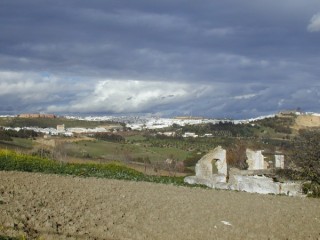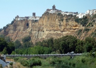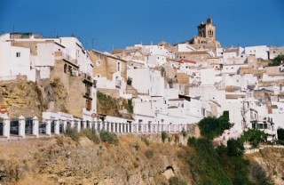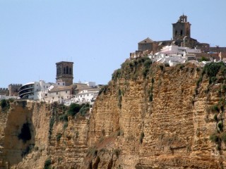 Arcos de la Frontera est un des plus célèbres "pueblos blancos" d'Andalousie; le village compte environ 30000 habitants; il est installé dans une position exceptionnelle, sur les pentes d'un promontoire qui se dresse au-dessus du rio Guadalete. Les maisons blanches serrées descendent le long de la. Le village fut d'abord une possession des Maures, jusqu'à ce que le roi Alphonse X de Castille s'en empare en 1250. Medina Arkosch, son nom initial, fut alors transformé en Arcos de la Frontera, car le village était encore situé à la frontière entre les possessions chrétiennes et maures. On peut visiter l'église Santa Maria de la Asuncion sur la plaza de España; l'église est bâtie dans un style gothique flamboyant du XVème siècle. En ce qui concerne l'architecture civile, on peut voir à Arcos de la Frontera le palais des ducs d'Osuna, d'anciennes fortifications de la ville, ainsi que le Palais des comtes d'Aguila, dont la façade est de style mudéjar.
