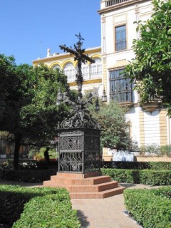 Le quartier (ou "barrio" en espagnol) de Santa-Cruz est le véritable coeur de Séville. Le quartier de Santa Cruz est constitué par un réseau de petites rues étroites héritées du moyen-âge. Les maisons couvertes de chaux, de magnifiques patios et placettes donnent beaucoup de charme à ce quartier où il fait bon flâner. Aux origines le quartier de Santa Cruz était le quartier juif de Séville; il fut transformé en quartier chrétien après la reconquête.