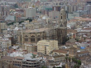 C'est depuis l'Alcazaba que l'on a les plus belles vues d'ensemble de la cathédrale de Malaga, noyée dans les immeubles parfois très modernes qui créent des contrastes saisissants.