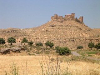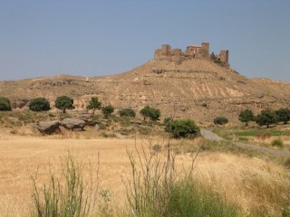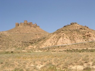 Le château monastère de Monte Aragon est une spectaculaire forteresse médiévale. On aperçoit sa silhouette de loin d'où que l'on arrive. Ce château-monastère a été fondé au Moyen-Age par le roi d'Aragon Sanche Ier Ramirez pour partir à l'assaut de la ville d'Huesca située en contrebas et qui était alors encore aux mains des Maures. Les terrasses ocres écrasées de soleil donnent au site un aire de désert syrien. Au nord ce sont pourtant les Pyrénées que l'on voit en arrière-plan, tandis que la riche plaine agricole de Huesca s'étend au sud.