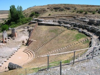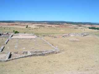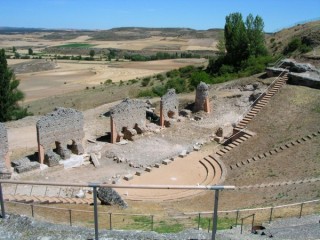 La cité romaine de Clunia est située au milieu de nulle part, dans la campagne Castillane. Cette ville antique fut la résidence de Sertorius et de Galba (qui a joué un rôle important lors des guerres civiles romaine de 69 après JC). La cité est implantée sur un plateau couleur ocre qui est assez venté et aride. Elle a été pillée par les barbares au IIIème siècle, mais son abandon définitif date du Vème siècle de notre ère. On voit encore le théâtre dont les gradins sont partiellement taillés dans la roche, ainsi que les restes du forum, des thermes, et de quelques villae patriciennes. Les amateurs de paysages immenses seront comblés car depuis Clunia le plateau castillan offre ses horizons immenses au regard...
