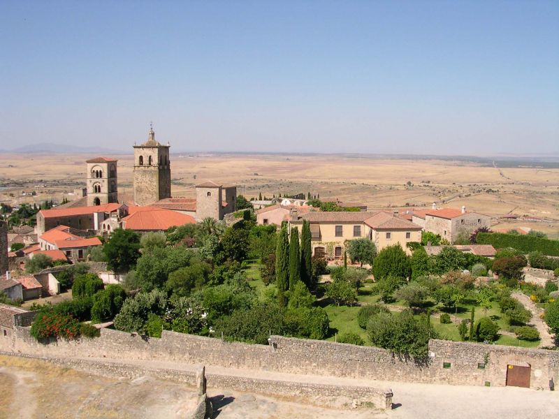 Photo de Trujillo et des paysages environnants. Trujillo est assez emblématique de l'Estrémadure : la ville a vu la naissance du conquistador Pizarro; elle conserve de beaux ensembles monumentaux du XVIème siècle qui, après la conquête de l'Amérique, fut un âge d'or pour la ville