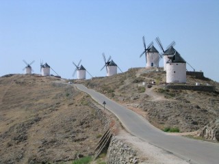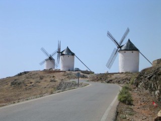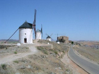 Les Moulins à vent sont un des symboles de l'Espagne depuis que Don Quichotte a cherché à les combattre... On peut voir des moulins, peut-être ceux qui ont inspiré Cervantès, dans les deux petits villages Manchego de Consuegra et de Campo de Criptana. Il reste onze moulins à Consuegra; ces derniers ont été implantés sur une crête qui domine le village, à côté du château féodal. De là les vues sur les paysages environnants sont très belles. Campo de Criptana conserve pour sa part 10 moulins (il y en eut jusqu'à 32).