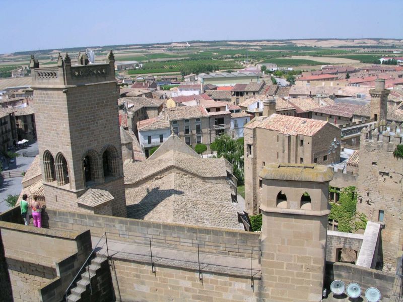Photo prise depuis les tours du Palais médiéval d'Olite (Navarre) - En contrebas, la ville d'Olite. A l'arrière-plan, la plaine semée de Vignes.