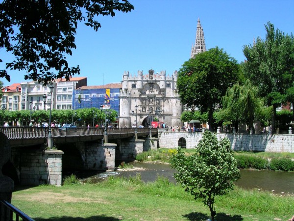 Le Rio Arlanzon à Burgos. A l'arrière plan, l'Arco de Santa Mario et les flèches de la cathédrale