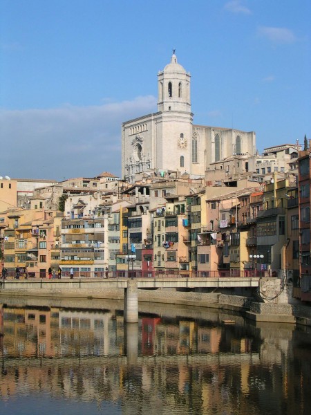 Gérone (Catalogne) - Vue de la ville historique depuis une passerelle sur l'Onyar |