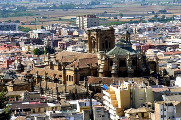 La vieille ville de Grenade : La cathédrale de Grenade vue depuis l'Alhambra |