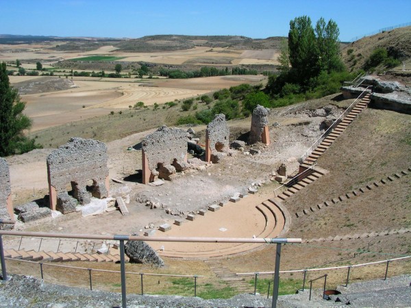 Cité romaine de Clunia : Le théâtre de Clunia, dont les gradins sont en partie taillés dans la roche |