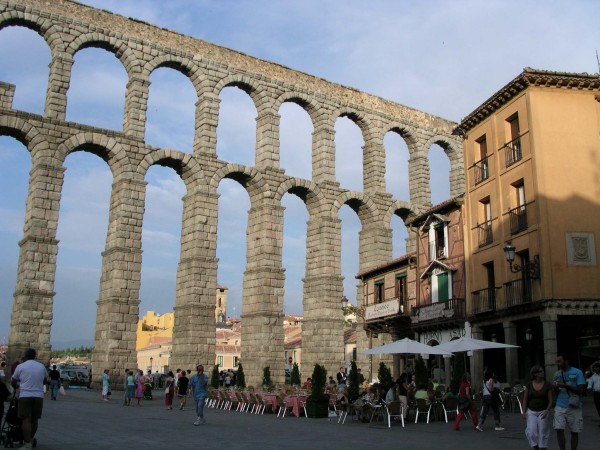 L'aqueduc de Ségovie : Les terrasses de café au pied de l'aqueduc de Ségovie |