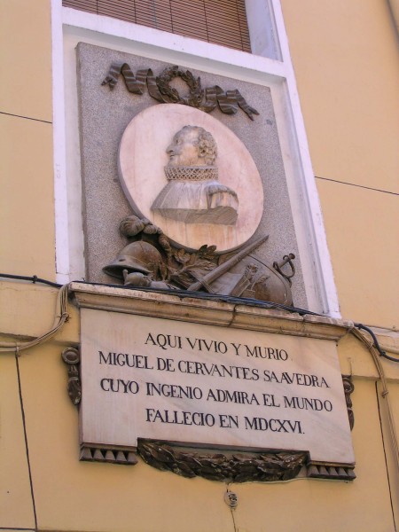 Façade de la maison de Cervantès à Madrid. Portrait de Cervantès dans un médaillon