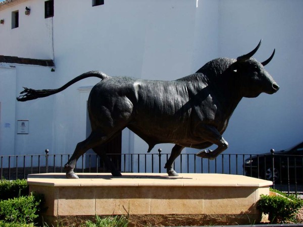 Photo d'une statue de Taureau non loin des arènes de Ronda