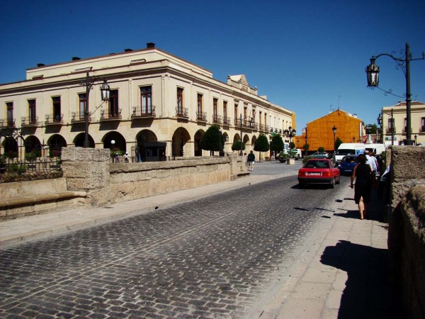 Photo de la Plaza de España et de l'Ayuntamiento (Mairie) de Ronda depuis le Puente Nuevo