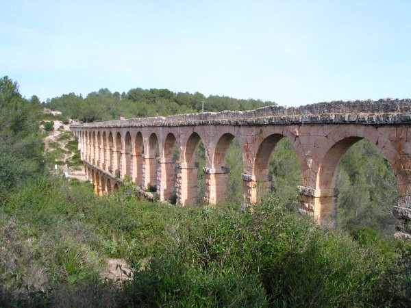 Photo du "Pont du Diable à Tarragone". Il s'agit en réalité de l'aqueduc romain, qui enjambe le vallon de Francoli.