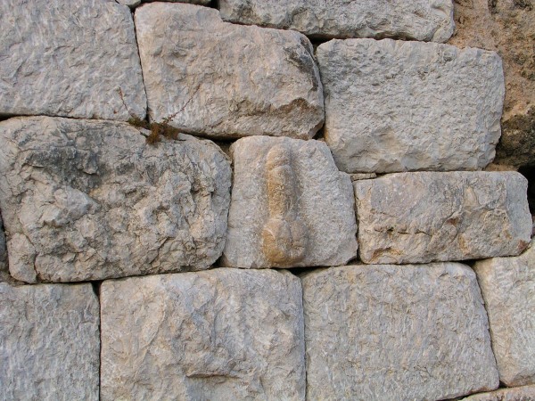 Ampurias : Vue du phallus protecteur de la cité, sculpté à l'entrée de la ville |